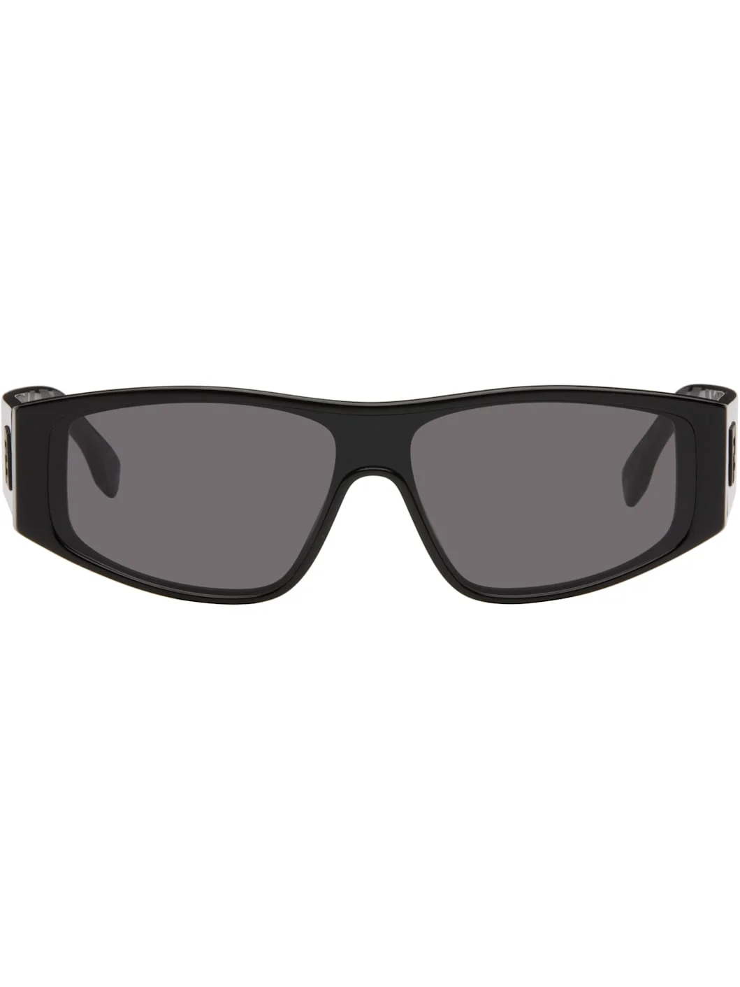 Rectangular acetate-frame sunglasses. · Gray lens · 100% UVA/UVB protection, category 3 · Integrated nose pads · Inset logo hardware at temples · Includes pouch · Size: 133.0 144 Supplier color: Shiny black/Smoke Acetate. Made in Italy 252693M134012