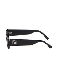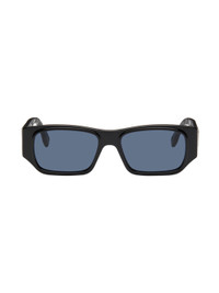 Rectangular acetate-frame sunglasses in black. · Blue lenses, Category 3 · Integrated nose pads · Logo hardware at temples · Includes pouch · Size: 54.17 145 Supplier color: Shiny black/Blue