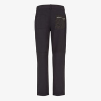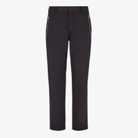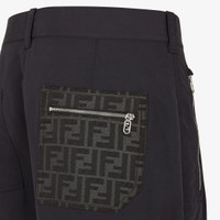 Cigarette pants with belt loops at the waist. Side zipper pockets and pockets on the back. Concealed zipper closure. Width at the hem: 17.2 cm (6.8 inches). Made of black cotton gabardine. Right back pocket in black FF jacquard, complete with a zipper with a Fendi O'Lock slider. Palladium-finish metalware. Made in Italy Composition: 97% cotton, 3% elastane, 65% polyester, 35% cotton, 1 button: mother of pearl Fit: Slim Product Code: FB0873AQMVF0QA1