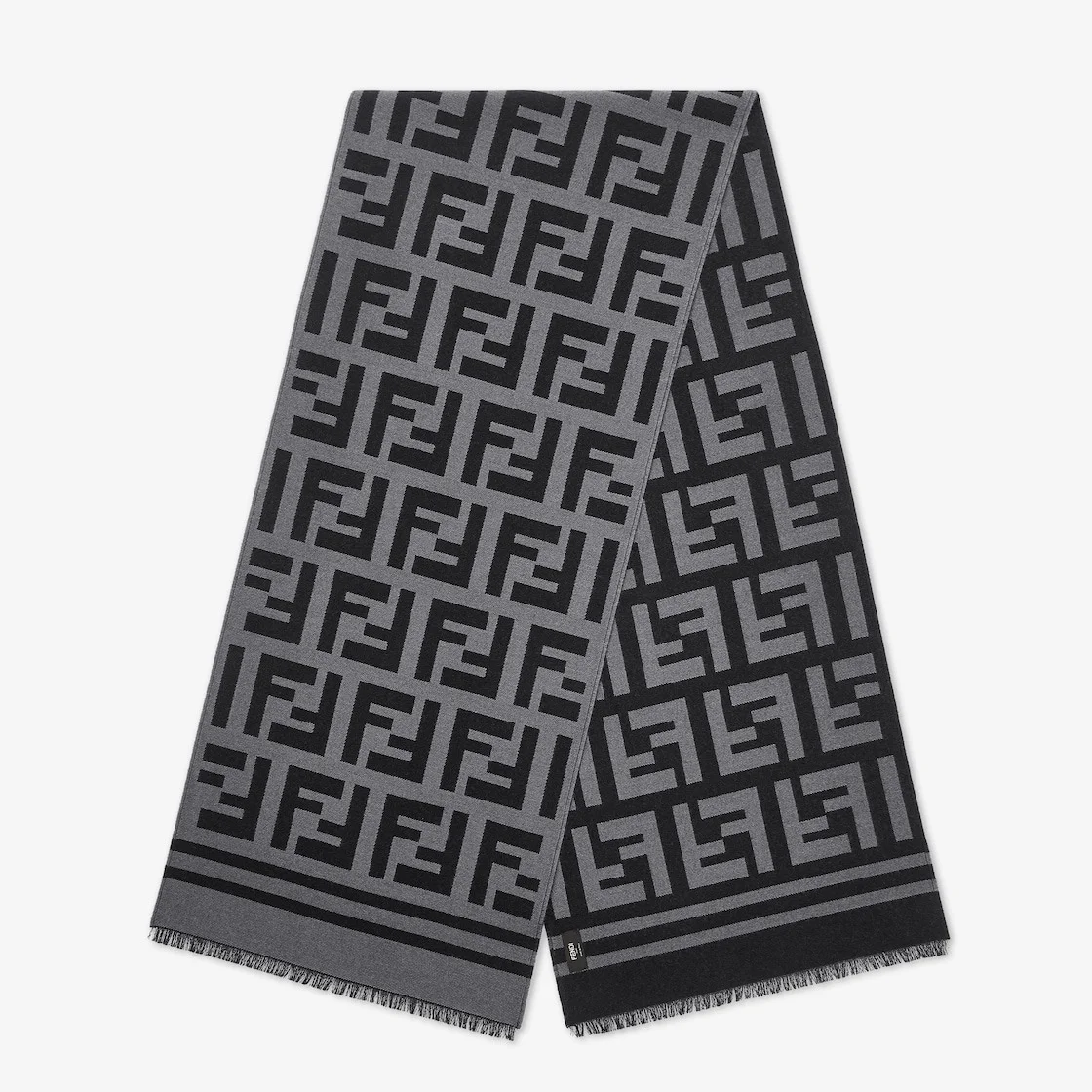 Rectangular scarf made of wool with black and gray all-over FF motif. Made in Italy Length:35, cm Height:180, cm Composition: 95% wool, 5% silk