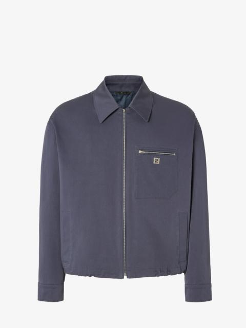 Blouson with a shirt collar and long sleeves with dropped shoulders and cuffs. Side pockets and breast pocket with zip. Metal zip fastening. Made of beige stretch gabardine. Customized with a palladium-metal micro FF logo applied on the front pocket. Made in Italy Composition: 97% cotton, 3% elastane, fabric inner lining: 100% cupro Size worn: 48 IT. The model is 188 cm tall Product Code: FW1393AUVIF0QE3