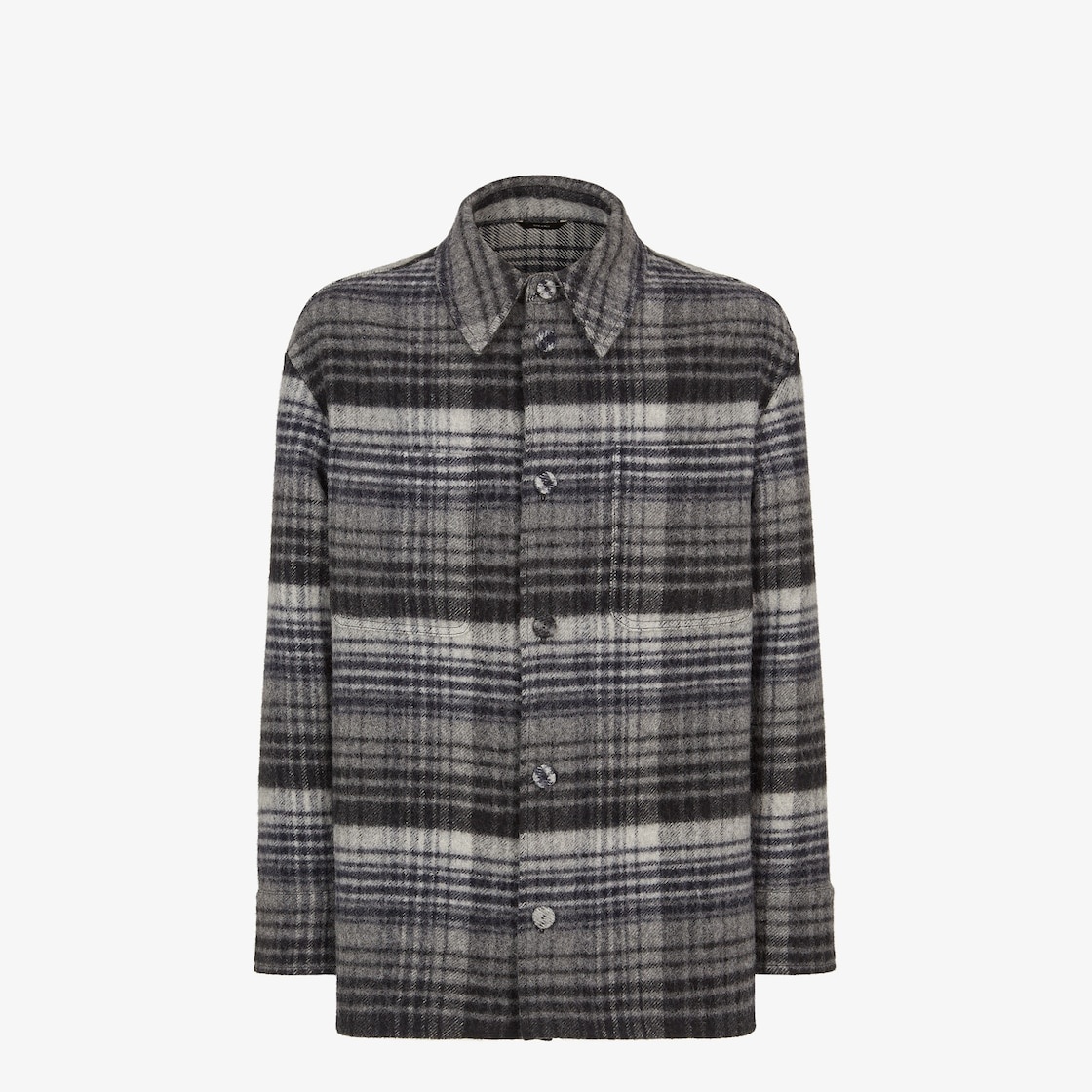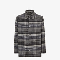 Single-breasted Go-To Jacket with shirt collar and low-cut set-in sleeves. Oversized patch pockets on the chest. Visible button closure. Made of flannel with a tartan motif printed all over in various tones of gray. Made in Italy Composition: 100% fleece wool Size worn: 48 IT. The model is 188 cm tall Product Code: FW1307APOTF1LUY