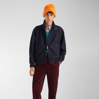 Blouson with high collar and long raglan sleeves. Stretch knit cuffs and hem. Slanted pockets on the sides. Double-slider Fendi zip fastening. Made of lightweight, dark blue cashmere fabric. Customized with embossed FF patch in a matching tone on the back of the collar. Palladium-finish metalware. Made in Italy Composition: 98% cashmere, 2% elastane, 100% cupro Product Code: FW1333APOAF1AJR