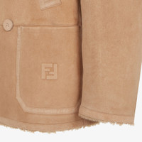 Double-breasted blouson with lapel collar and long sleeves. Hand-warming pockets and patch pockets at the hem. Button closure. Made of light brown sheepskin. Embellished with embossed FF logo on the lower left pocket. Made in Italy Composition: 100% goat fur, 6 buttons: mother of pearl Product Code: FM0270ATJBF0QB8