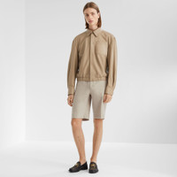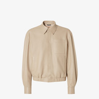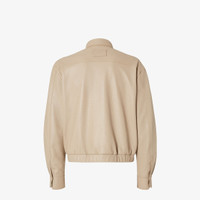Short blouson with shirt collar and elastic edge. Long sleeves, side pockets and small patch pocket on the chest. Snap closure. Made of soft, beige hammered leather. Embellished with raised micro Selleria stitching in the same tone. Made in Italy Composition: 100% deer leather, lining: 100% cupro Size worn: 48 IT. The model is 188 cm tall Product Code: FPJ884ATG3F0QB9