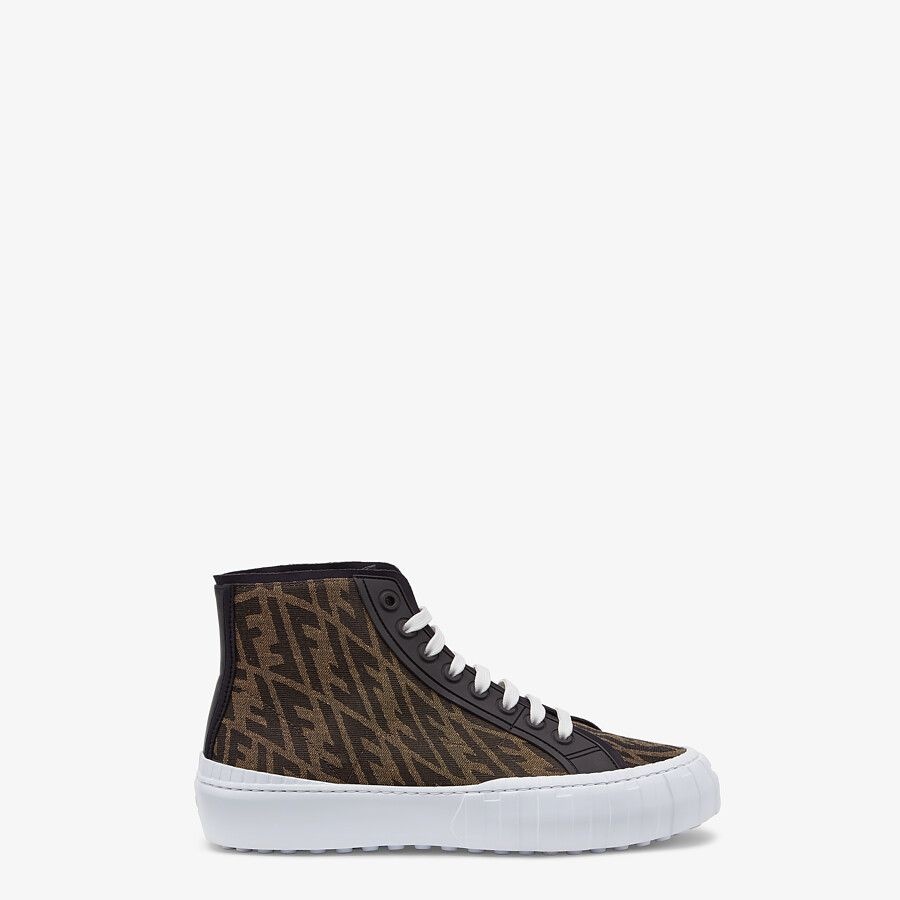 Fendi Force lace-up sneakers. Made of brown FF Vertigo jacquard fabric. Trimmed with Lycra® piping and matching rubber eyelets. Light rubber sole with embossed FF detail on the toe. Made in Italy Model height:189 cm Model size:48 IT Composition: 65%POLYESTER,35%COTTON,Material 2:100%CALF LEATHER,Material 3:80%POLYAMIDE,20%ELASTANE,Inside:100%PO