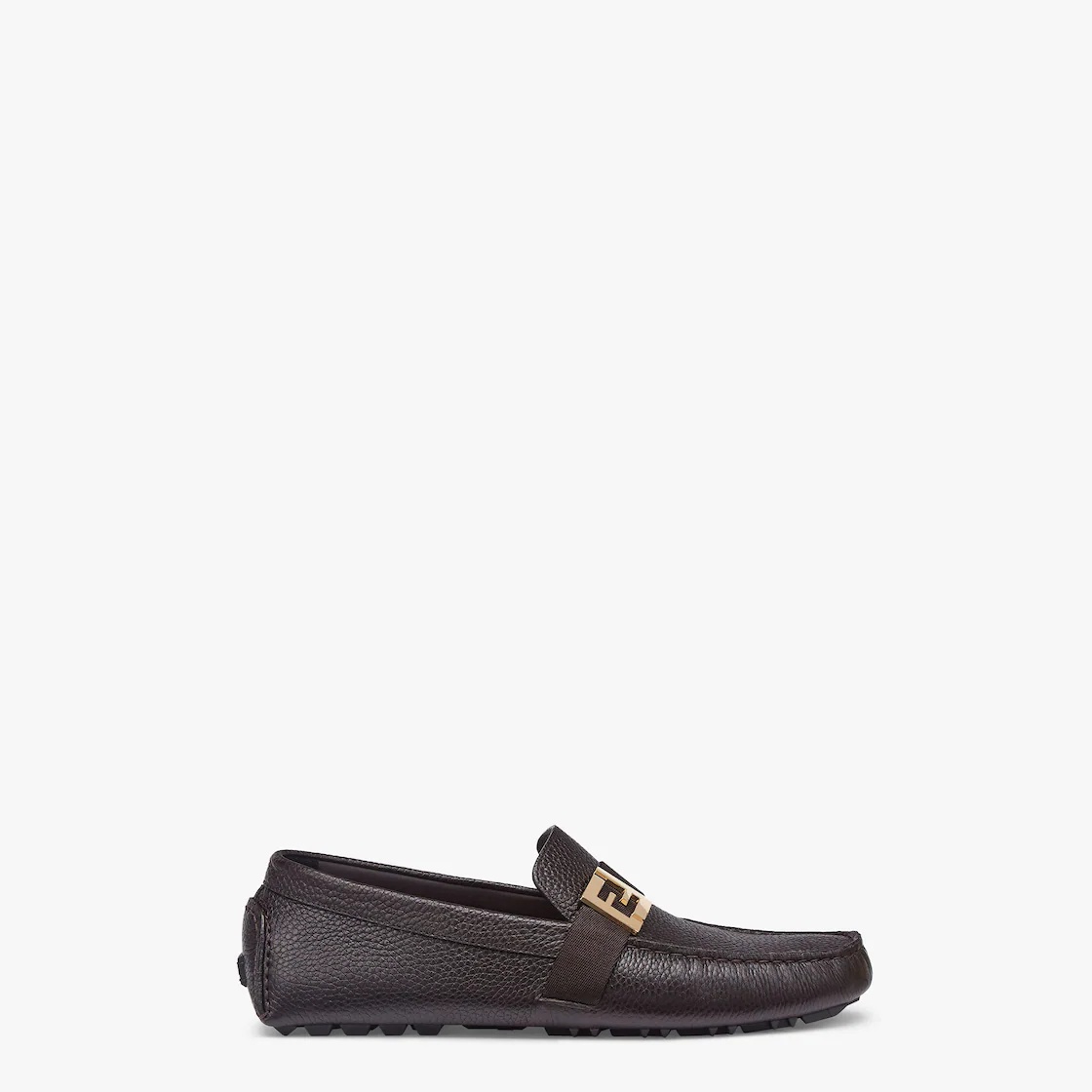 Driving loafers. Flexible pebble soles. Made of brown leather. Matching ribbon with FF gold-colored metal detail. Made in Italy Composition: 100% calf leather, 95% polyester, 5% polyamide; inside: 72% polyamide, 28% polyester Product Code: 7D1295A9S8F1IC0