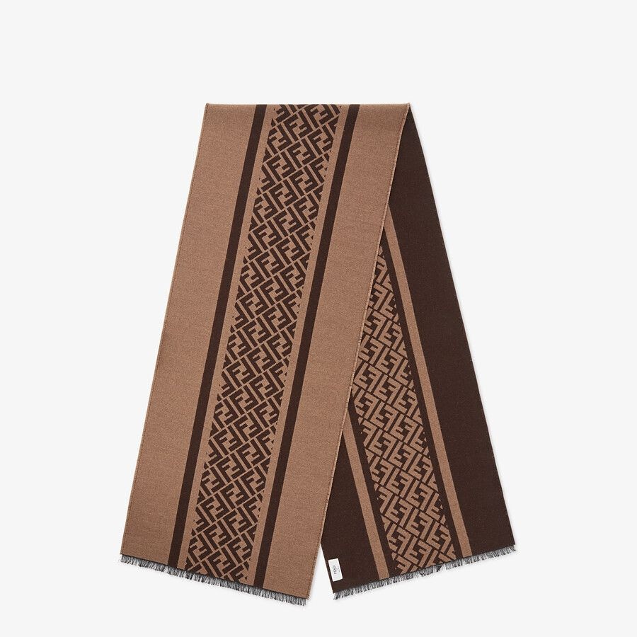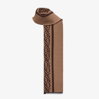 Rectangular scarf made of wool and silk blend with beige and brown FF motif and stripes. Finished with fringes at the hem. Made in Italy Length:30, cm Height:180, cm Composition: 95% Wool, 5% Silk