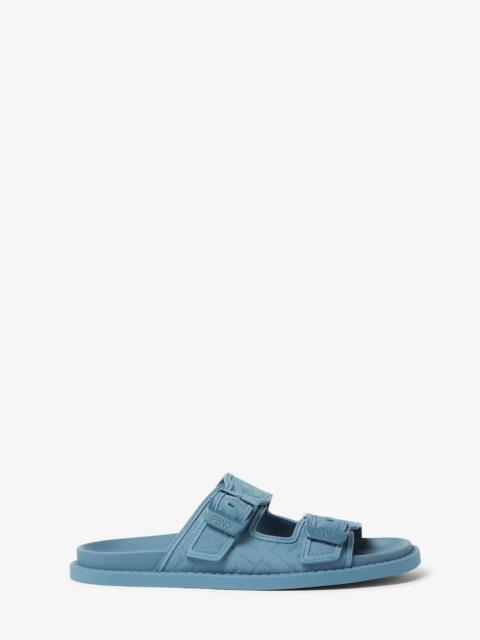 Sandals with wide, adjustable straps. Made of beige nubuck leather with hot-stamped FF motif. Leather base and tone-on-tone rubber sole. Tone on tone varnished metalware. Made in Italy Composition: 100% calf leather, inside: 100% calf leather Product Code: 7X1604AN8BF0EJB