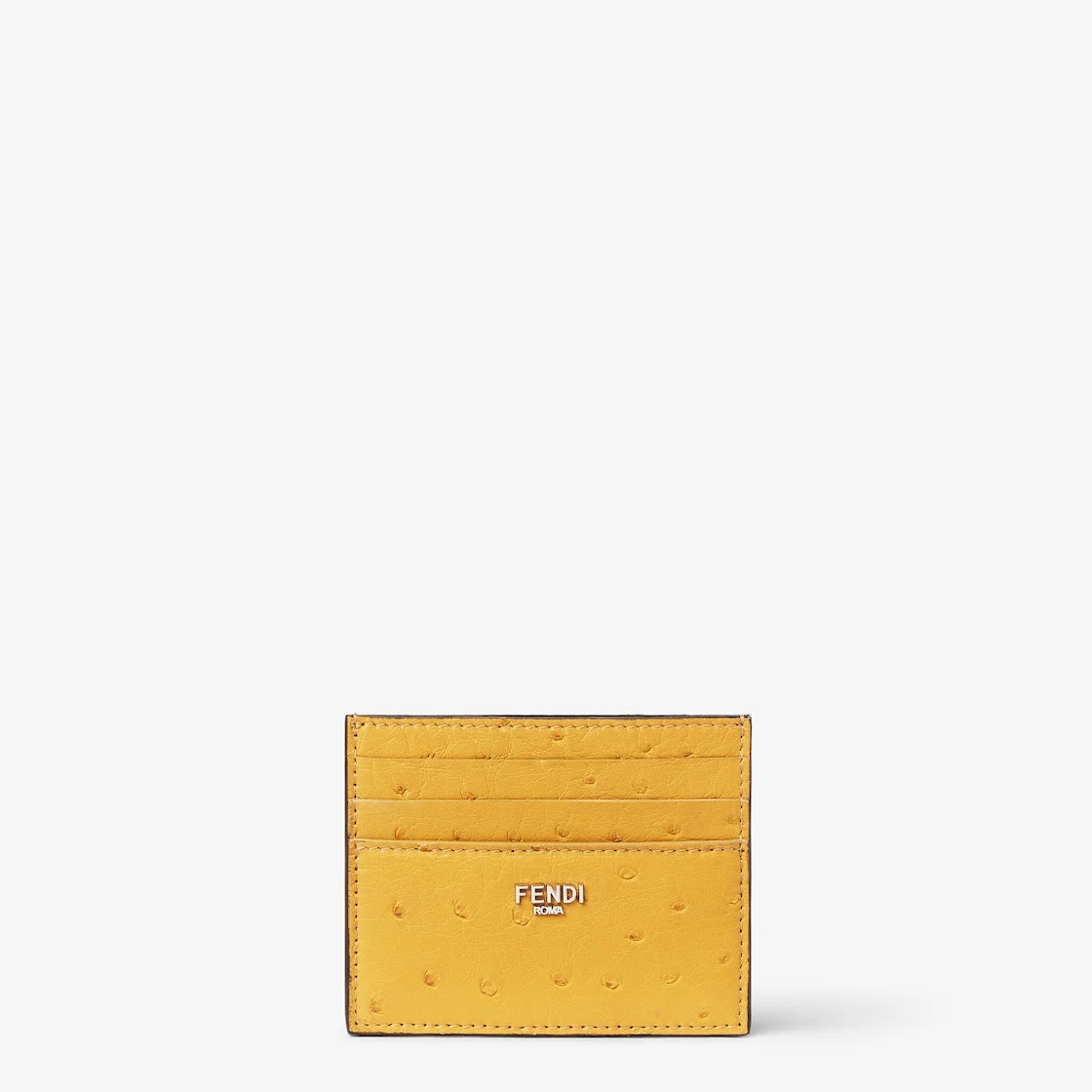 Card holder with six slots and flat central pocket. Made of yellow ostrich leather. Palladium-finish metalware. Made in Italy Composition: 100% ostrich leather, 53% cotton, 47% polyurethane Product Code: 7M0164AV7VF0M8A