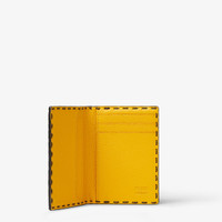 Compact bi-fold card holder with three card slots and three flat pockets inside and one flat pocket on the back. Made of black Cuoio Romano leather with 104 hand-sewn macro topstitches, an emblem of the iconic Selleria workmanship handed down through generations of Fendi artisans since 1925. Contrasting yellow leather lining. Palladium-finish metalware. Made in Italy Composition: 100% calf leather, inside: 100% calf leather, 53% cotton, 47% polyurethane Product Code: 7M0349AW2FF0R2A
