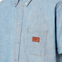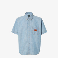 Shirt with button-down collar and short sleeves. Patch pocket on the chest and rounded hem. Metal logo snap button closure. Made of light blue, washed cotton Chambray. Embellished with contrasting stitching and FF embroidery on the breast pocket. Made in Italy Composition: 100% cotton Size worn: 48 IT. The model is 188 cm tall Product Code: FS1321AUWXF0LQ0