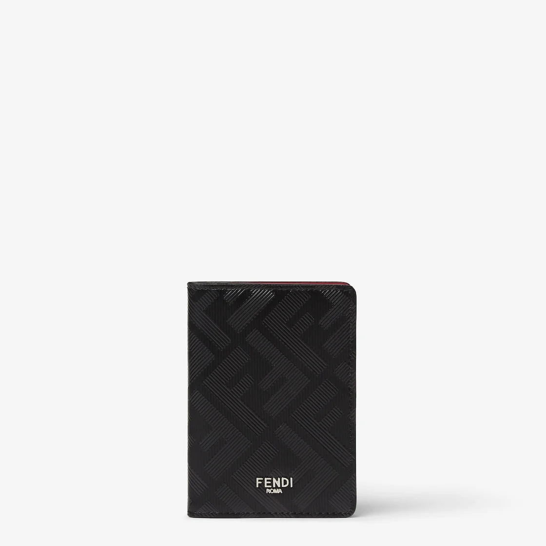 Compact bi-fold card holder with three inside card slots and one flat pocket inside and on the back. Made of black leather with FF motif. Embellished with red leather details. Palladium-finish metal FENDI ROMA lettering. Made in Italy Composition: : 100% Calfskin, interior: 100% Calfskin, 62% Cotton, 38% Polyurethane Model height: null Size worn: null Measurements: - Height: 11 cm - Depth: 0.5 cm - Width: 7.5 cm Product Code: 7M0349AJF4F19KP