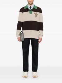 cotton polo shirt Highlights - Taupe brown - Short front button fastening - Horizontal stripe pattern - Embroidered logo at the chest - Long sleeves Made in Italy Composition Cotton 100% SIZE & FIT Model measurements Height 6 ft 2 in(1.87 m) Bust/Chest 37.79 in(96 cm) Hips 37.79 in(96 cm) Waist 30.31 in(77 cm) FittingInformation Designed for a loose fit, this polo shirt offers additional room throughout Made from a midweight non-stretch fabric, this piece offers minimal elasticity when worn Washing instructions Dry Clean Only