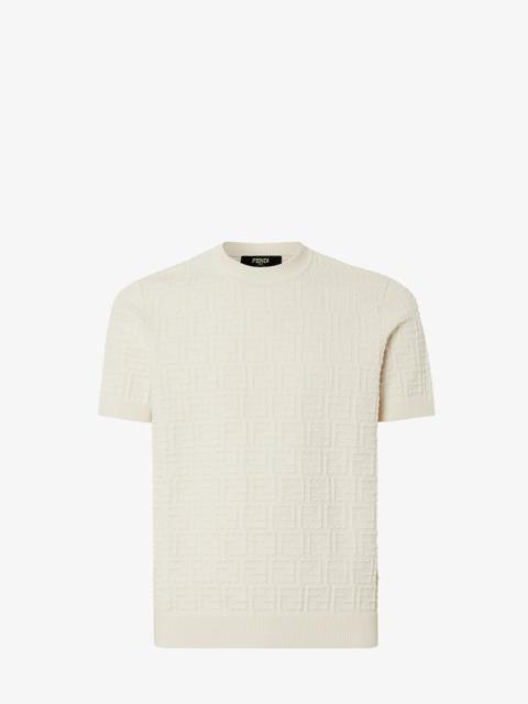 Crew-neck sweater with short sleeves. Made of black cotton yarn with all-over FF logo in the same color. Embellished with ribbed edges. Made in Italy Composition: 100% cotton Size worn: 48 IT. The model is 188 cm tall Product Code: FZX051AUW0F0QA1