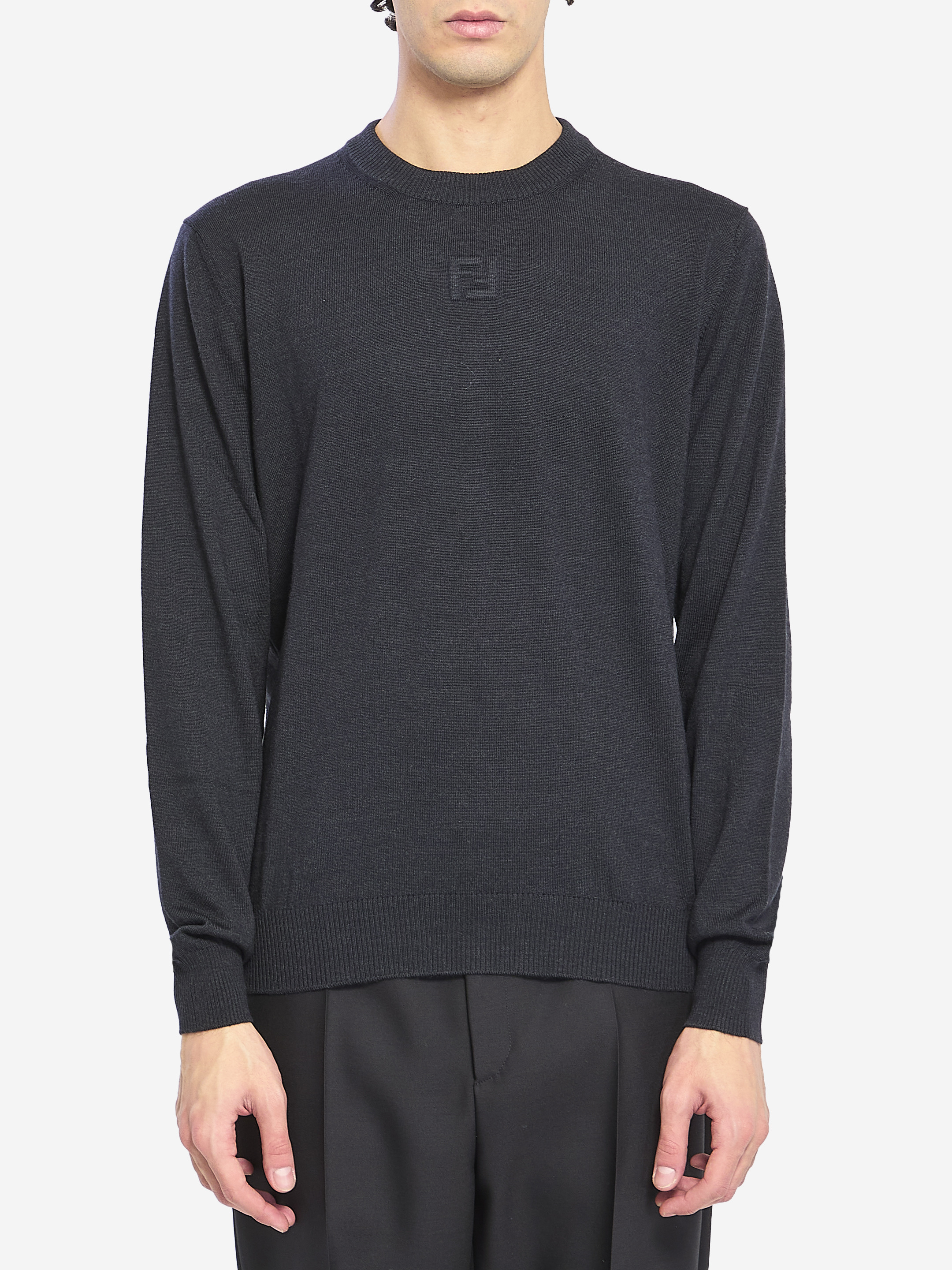Lightweight wool sweater in dark grey. Features a ribbed crew neck, long sleeves, raised FF detail on the front, and ribbed hem and cuffs. Regular fit. The model is 189 cm tall and wears size 48 IT. More Info Product Number : 426606 Product Code : FZX091ASH3F0TY3 The model is 189 cm tall and wears size 48 IT. Composition : 98% virgin wool, 2% elastane Made in: Italy