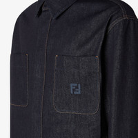 Straight-cut, long-sleeved jacket. Pointed collar and slightly dropped shoulders. Patch pockets on the chest and side welt pockets. Snap closure. Made of dark blue denim fabric. Customized with contrasting stitching, tone-on-tone Selleria topstitching and FF logo embroidered on the left pocket. Made in Italy Composition: 100% cotton Size worn: 48 IT. The model is 186 cm tall Product Code: FW1321AUAGF1RXI