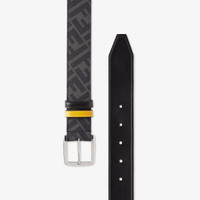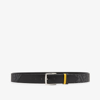 Belt with pin buckle and loop. Made of black FF canvas. Embellished with black leather diagonal insert and yellow leather belt loop. Palladium-finish metalware. Made in Italy Measurements: - Width : 3.5 cm Composition: 49% polyurethane, 28% cotton, 23% polyester, 100% calf leather, back: 100% calf leather Product Code: 7C0497A9XSF0R2A