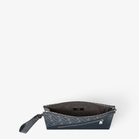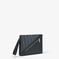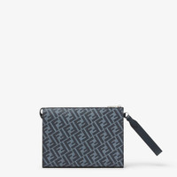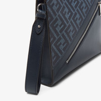 Clutch bag made of denim blue FF canvas and dark blue leather, with a dark blue leather diagonal insert. Zipper closure and palladium-finish metalware. Removable bracelet handle. Made in Italy Composition: 100% calf leather, 43% cotton, 14% polyester, 43% polyurethane, inside: 63% cotton, 34% polyester, 3% acrylic Product Code: 7VA491ASICF1O97