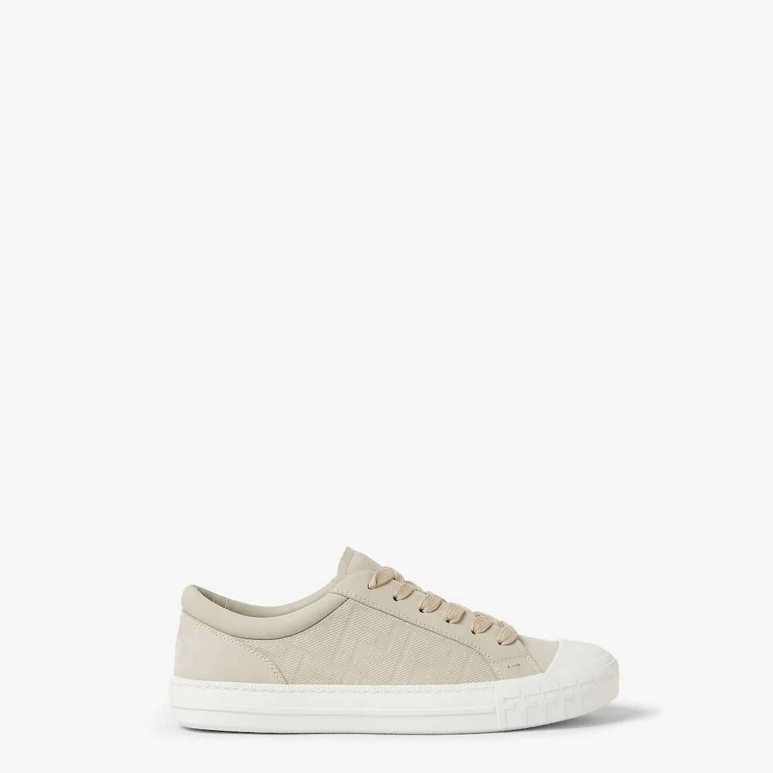 Domino sneakers with rubber cupsoles. Made of beige nubuck leather with hot-stamped FF motif. Trimmed with tone on tone smooth nubuck leather details. Rubber cupsole with embossed FF motif on the toe. Made in Italy Composition: 100% calf leather, inside: 100% calf leather Product Code: 7E1772AN8BF0EJB