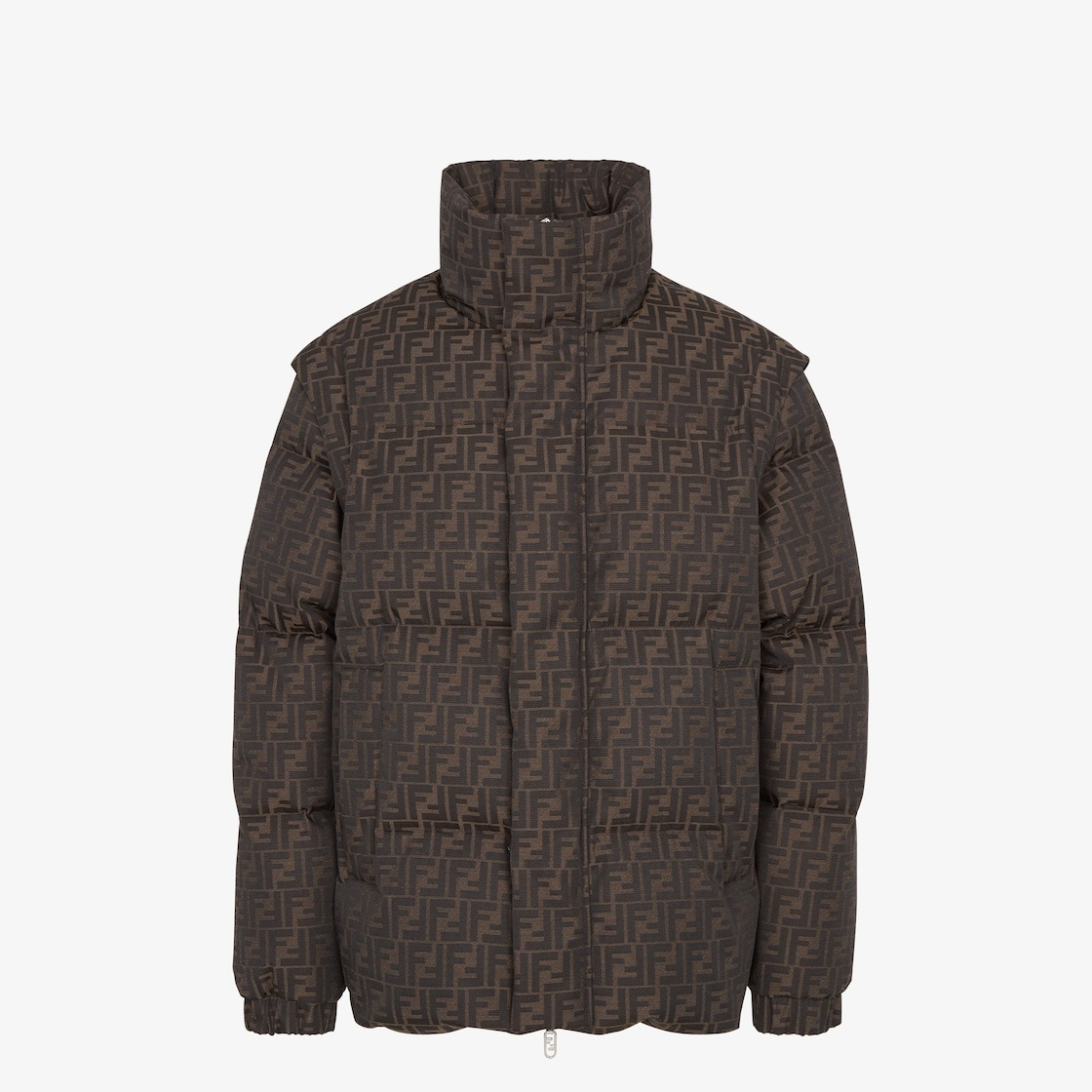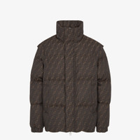 Puffer jacket with high collar and long removable sleeves. Side zipped pockets and stretch cuffs. Concealed zip fastening with double slider. Made of brown FF jacquard nylon. Palladium-finish metalware. Made in Italy Composition: 75% polyester, 20% wool, 5% polyamide, lining: 100% polyamide, padding: 100% polyester Size worn: 48 IT. The model is 185 cm tall Product Code: FAA946ATN4F1RAY