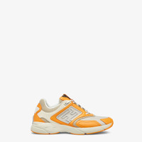 Fendi Faster sneakers made of orange nubuck leather with beige tech fabric details and 3D rubber FF