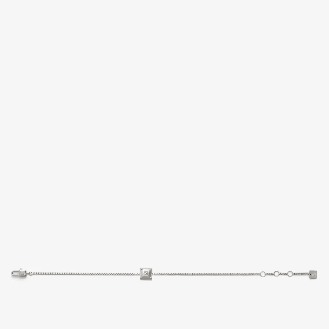 Slim bracelet with box chain link, made of sterling 925 for an extraordinary style statement. Part of the new Fendi 925 men’s fashion jewelry line, inspired by the shapes of precious stones. The bracelet features a distinctive and exclusive square-shaped detail with engraved FF motif. Clip closure. Made in Italy Composition: 100% silver-6g Product Code: 7AK027AV8KF1TR9 Product Care: Keep the product away from perfumes, cosmetics and solvents, sea water and chlorinated water. Store the product in a separate, cool and dry place. Silver naturally tends to tarnish over time. If this happens, feel free to contact the Fendi Client Service or our boutique staff in person.