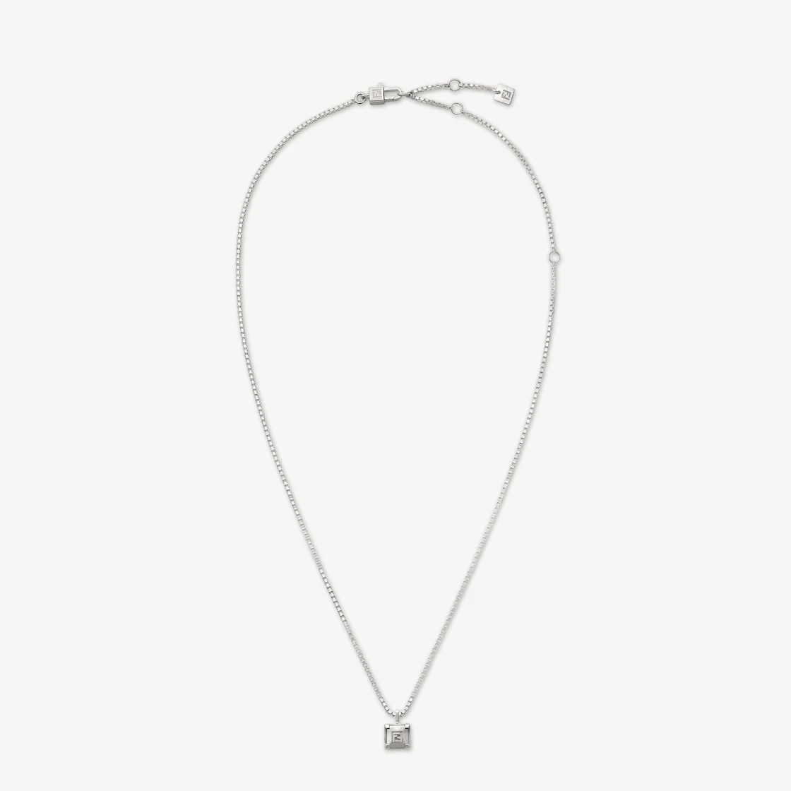 Thin necklace with box chain link, made of sterling 925 for an extraordinary style statement. Part of the new Fendi 925 men’s fashion jewelry line, inspired by the shapes of precious stones. The necklace features a distinctive and exclusive square-shaped pendant design with engraved FF motif. Clip closure. Made in Italy Composition: 100% silver-10g Product Code: 7AJ990AV8KF1TR9 Product Care: Keep the product away from perfumes, cosmetics and solvents, sea water and chlorinated water. Store the product in a separate, cool and dry place. Silver naturally tends to tarnish over time. If this happens, feel free to contact the Fendi Client Service or our boutique staff in person.