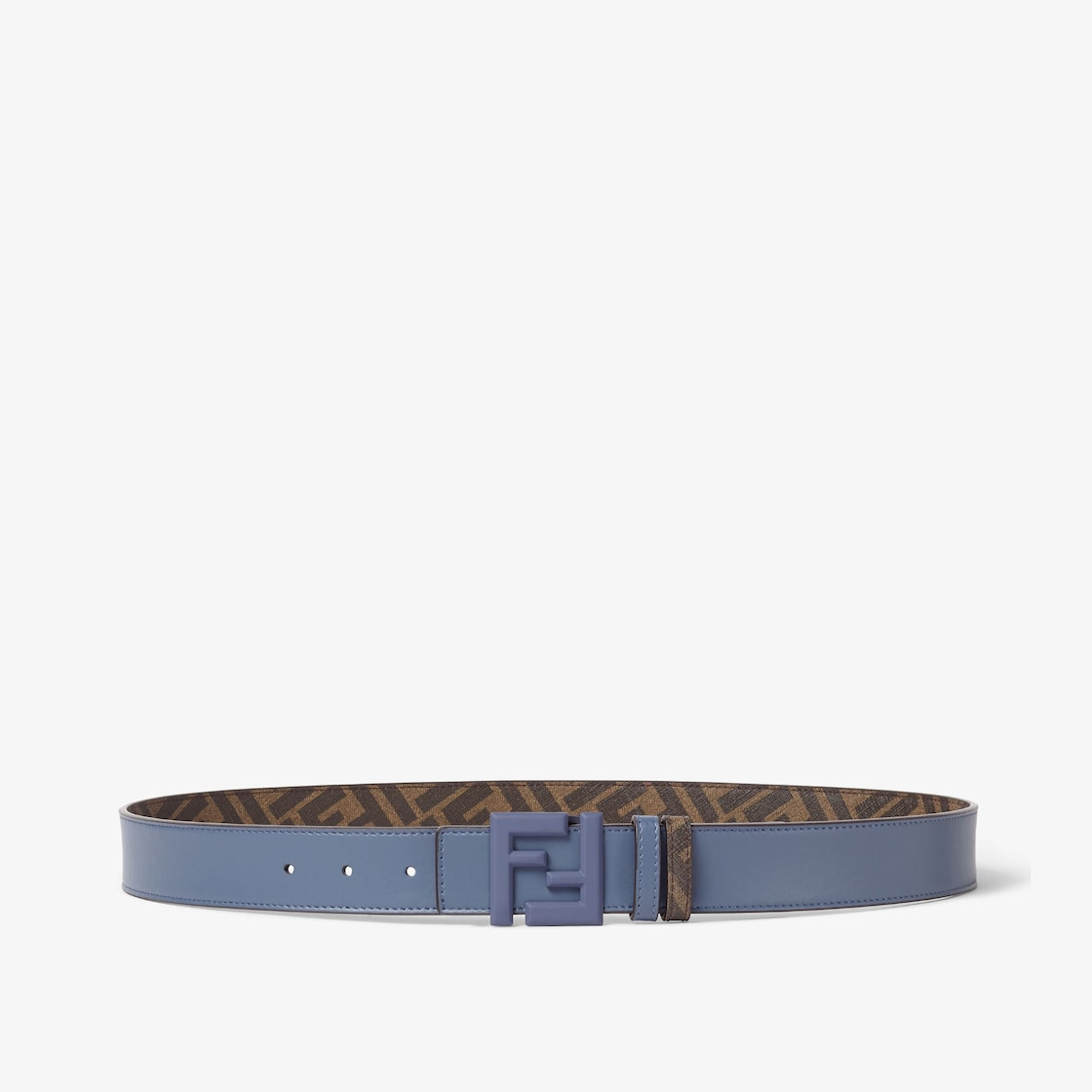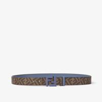 Reversible belt with FF Squared stud buckle. Made of dark blue leather. Brown FF canvas lining. Satin-finish buckle in the same tone. Made in Italy Composition: 100% calf leather, inside: 49% polyurethane, 28% cotton, 23% polyester Product Code: 7C0546AUGRF1SCP