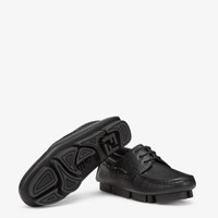 Boat shoes with oversized stitching on the apron and lace up closure. Made of black full-grain leather. Featuring a black injection platform sole with FF detail and Fendi lettering. Made in Italy Composition: 100% calf leather, interior: 100% calf leather Product Code: 7D1685TDKF0ABB
