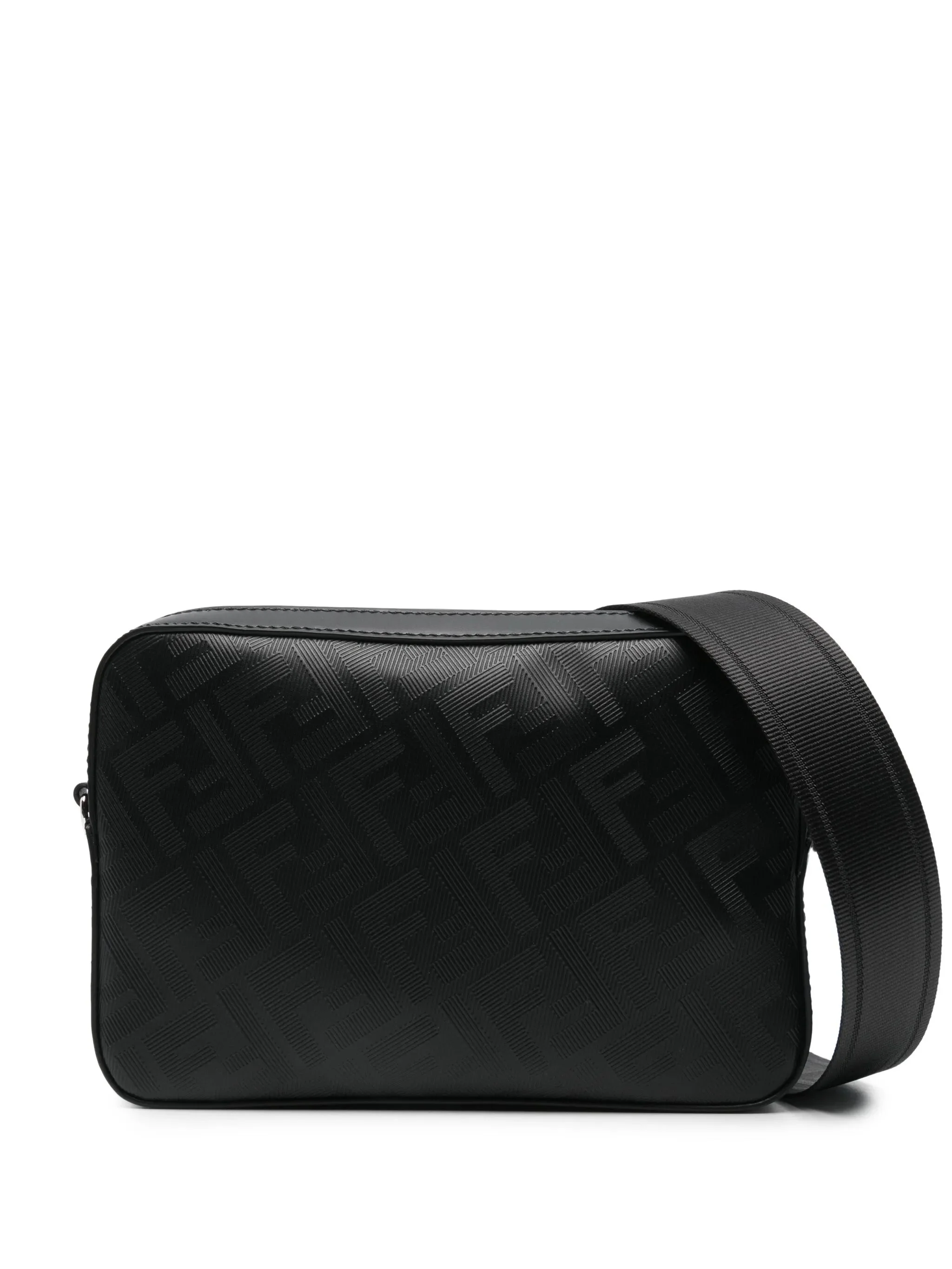 black calf leather smooth grain/grained texture top zip fastening adjustable detachable logo-jacquard shoulder strap FF motif main compartment internal logo patch internal card slots full lining This piece comes complete with a protective dust bag. - depth: 5.0 centimetres, height: 15.0 centimetres, strap: 156.0 centimetres, width: 22.0 centimetres - Color: BLACK - Made in: Italy - Designer Style ID: AQW1 7M0286 F0GXN Composition and care Outer Composition Calf Leather: 100.0%
