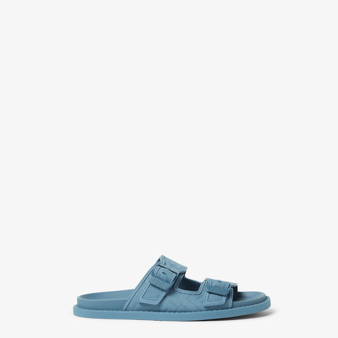 Sandals with wide, adjustable straps. Made of light blue nubuck leather with hot-stamped FF motif. Leather base and tone-on-tone rubber sole. Tone on tone varnished metalware. Made in Italy Composition: 100% calf leather, inside: 100% calf leather Product Code: 7X1604AN8BF12KC