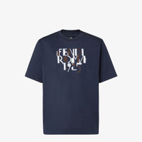 Regular-fit, short-sleeved crew-neck T-shirt. Made of 100% cotton in dark blue. Customized with the Fendi Roma 1925 print and brown and white embroidered details, inspired by the geometric aesthetic of the 1920s and the graphic patterns of the Fendi fashion show in 2000. Made in Italy Composition: 100% cotton Product Code: FY0936AVOHF0PTH