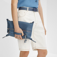 Geometric key ring with clip and logo ring. Made of blue leather. Brown FF canvas back. Palladium-finish metalware. Made in Italy Composition: 100% calf leather, 100% metal Product Code: 7AP078AFF2F1SCC