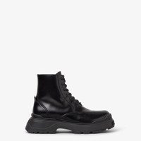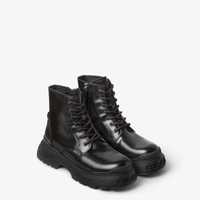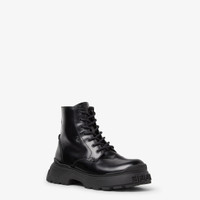 Fendi Force Light combat boots with side zip. Made of black brushed leather. Debossed Fendi Roma logo on the side. Decorated with the iconic 3-stitch Selleria detail on the eye stays. Lightweight black rubber sole with embossed FF detail on the toe and micro FF pattern on the heel. Made in Italy Composition: 100% calf leather, inside: 100% calf leather Product Code: 7U1826AWCZF0ABB