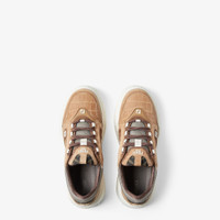 Fendi Force lace-up low-tops. Made of crocodile print leather with a nubuck leather feel and beige faded effect, with padded elements. Brown suede and plain technical fabric details. Embroidered FF detail on the side. Lightweight, chunky white rubber sole with FF motif on the toe and heel. Made in Italy Composition: 100% calf leather, 100% thermoplastic polyurethane, inside: 100% polyester Product Code: 7E1728ATTRF1T20
