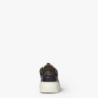 Fendi Force lace-up low-tops. Made of black full-grain leather with padded elements. Embellished with details in brown FF Jacquard, smooth black leather, injections and black technical fabric. Completed by lightweight, white rubber soles with the FF motif on the toe and heel. Made in Italy Composition: 100% calf leather, 100% polyester, inside: 100% polyester, 100% lamb leather Product Code: 7E1728AU20F08M4