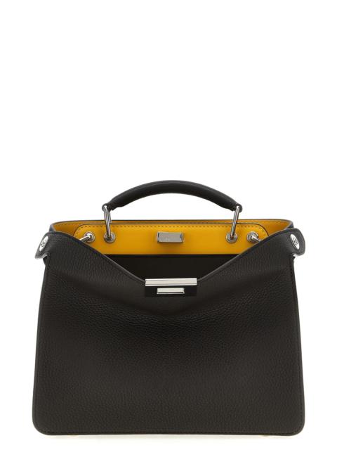 cod. 7VA530AFC3F1RI7 'Peekaboo ISeeU Small' handbag in Roman Leather with contrasting interior, on the front iconic turn lock and on the back zip closure, fixed handle, the removable inner pocket is made on one side in leather on the other in FF Canvas, adjustable and removable shoulder strap. Color: Brown Size & Fit: W 26 x H 25 x D 10.5 cm Composition: 100% calfskin leather (Bos Taurus) Made in: Italy