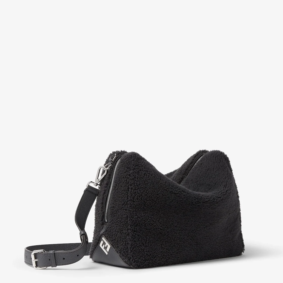 Large Fendi Lui bag with a soft construction, made of dark gray curly shearling. Decorated with a long zipper closure with double slider and FF metal appliques on the corners. Finished in gray leather. Large fabric-lined internal compartment, inner flat pocket, and metalware with palladium finish. The bag can be carried by hand or worn either on the shoulder or cross-body thanks to the removable handle and adjustable, detachable shoulder strap. Made in Italy Composition: 100% sheep fur, 100% calf leather, inside: 63% cotton, 34% polyester, 3% acrylic Product Code: 7VA667AVV1F1ULS