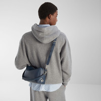Medium Fendi Lui bag with a soft design, made of dark blue full-grain calf leather. Decorated with a long zipper closure with double slider and FF metal appliques on the corners. Fabric-lined internal compartment, inner flat pocket and metalware with palladium finish. The bag can be carried by hand or worn either on the shoulder or cross-body thanks to the removable handle and adjustable, detachable shoulder strap. Single compartment designed to hold a mini tablet, smartphone and small everyday items. Made in Italy Composition: 100% calfskin, inside: 63% cotton, 34% polyester, 3% acrylic Product Code: 7VA672ASIHF1USR