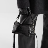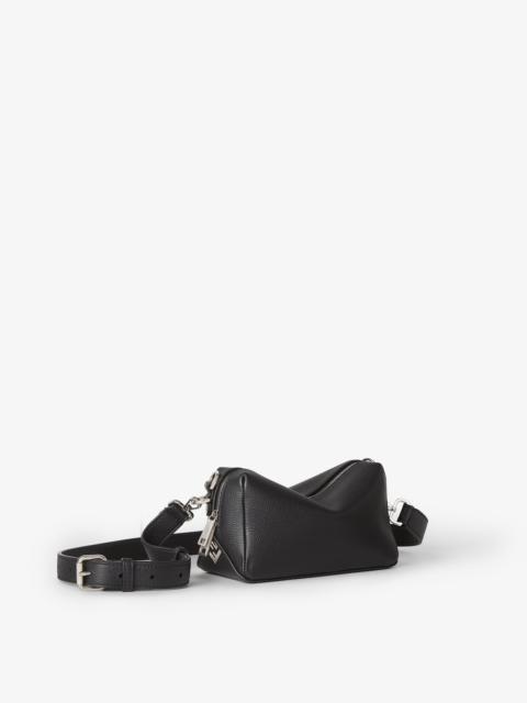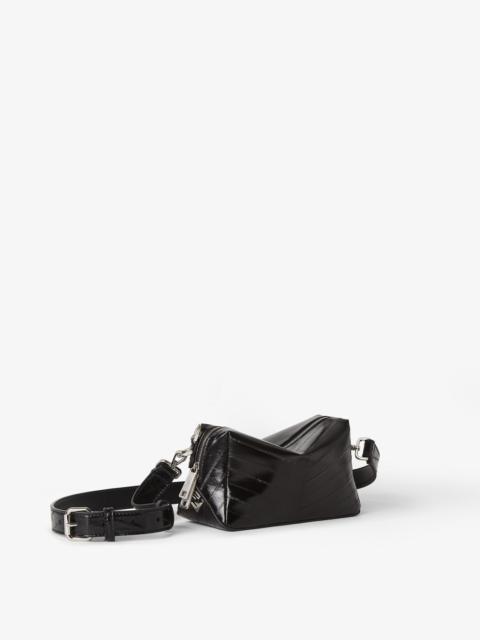Small Fendi Lui bag with a soft design, made of luxurious black hagfish leather with a shiny finish and inlaid to create a chevron motif. The natural characteristics of the leather make each bag a unique piece. Decorated with a long zip fastening with double slider and FF metal appliques on the corners. Fabric-lined internal compartment and palladium-finish metalware. The bag can be carried by hand or worn either on the shoulder or cross-body thanks to the removable handle and adjustable, detachable shoulder strap. Made in Italy Composition: 100% hagfish, 100% calf leather, inside: 90% polyester, 10% polyurethane Product Code: 7VA668AYE6F0GXN