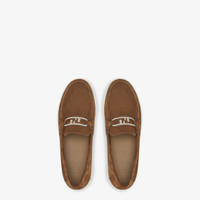 Loafers with flexible white rubber sole and buckle with Fendi O’Lock motif. Made of brown suede. Palladium-finish metalware. Made in Italy Composition: 100% calfskin, interior: 100% calfskin Product Code: 7D1717QK9F0RZ2