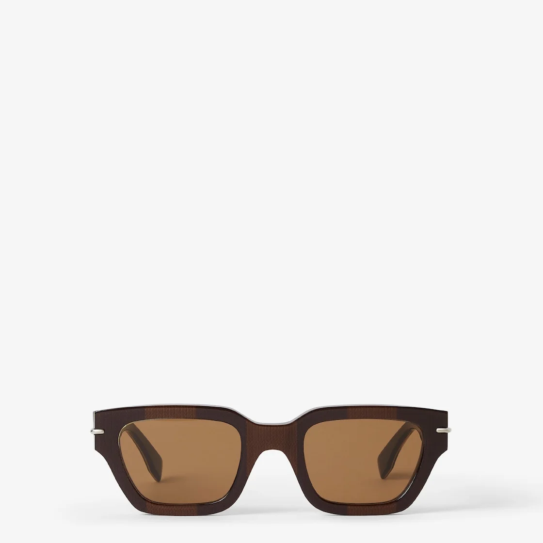 Fendi Selleria square glasses in acetate, with brown striped Pequin motif, embellished with three embossed metal stitches and Fendi logo with palladium finish. Tobacco brown lenses. Made in Italy Composition: 100% acetate Product Code: FOL590V1PF1UIG Product Care: Wash your eyeglasses every day with warm water and a pH-neutral soap.Do not use alcohol, aggressive chemical products or disinfectant wipes and do not dry them with paper or other cloths that could scratch them or leave streaks.Dry with a clean microfiber cloth.After use, always keep your eyeglasses in their case.