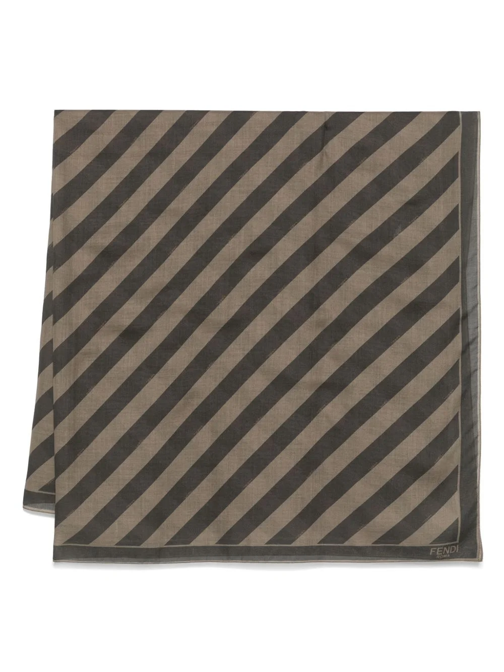 striped scarf Highlights - Khaki - Logo print to the front - Finished edge - Rectangle shape - This piece comes complete with a protective dust bag. Made in Italy Composition Silk 50%, Wool 50% SIZE & FIT Measurement LENGTH 55.11 in(140 cm) WIDTH 55.11 in(140 cm) Washing instructions Dry Clean Only
