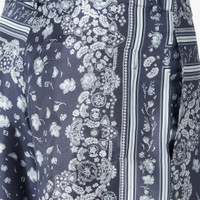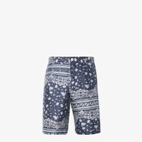 Bermuda shorts with side pockets and belt loops at the waist. Concealed zip fastening. Made of silk with bandana coral motif printed all over in white and blue. Made in Italy Composition: 100% silk, lining: 100% cupro, 8 buttons: mother-of-pearl Size worn: 48 IT. The model is 186 cm tall Product Code: FB1014AUVQF0U6K