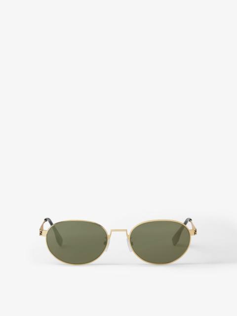 Metal oval sunglasses with a golden finish. FF logo finished with enamel. Dark green acetate tips with FF motif. Green lenses. Adjustable nose pads. Made in Italy Composition: 100% metal Product Code: FOL586V1TF1NYC Product Care: Wash your eyeglasses every day with warm water and a pH-neutral soap.Do not use alcohol, aggressive chemical products or disinfectant wipes and do not dry them with paper or other cloths that could scratch them or leave streaks.Dry with a clean microfiber cloth.After use, always keep your eyeglasses in their case.