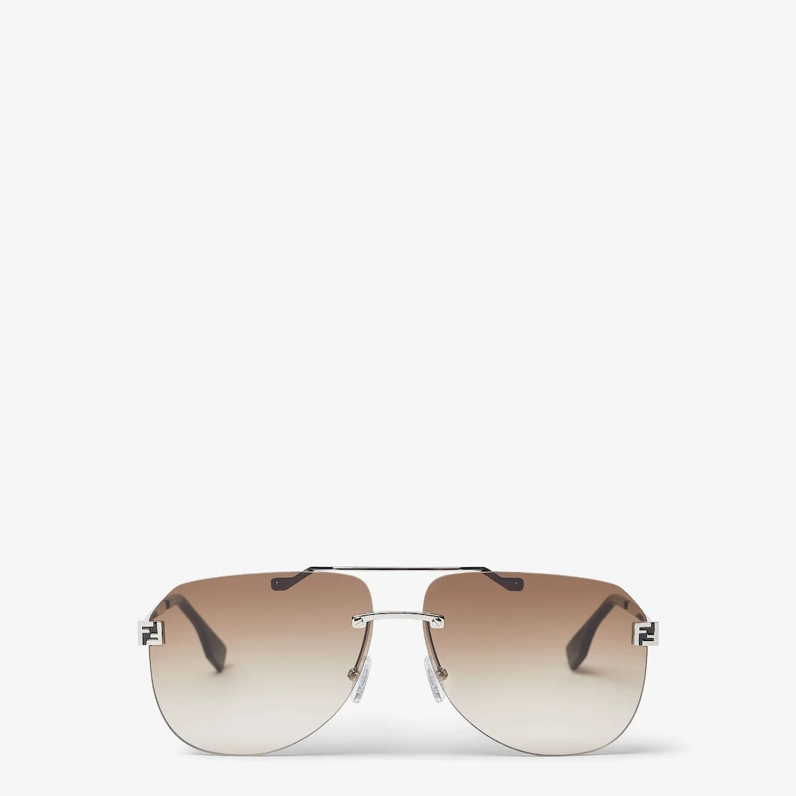 Aviator, ultra-lightweight Fendi Sky eyeglasses featuring gradient brown lenses and metal end pieces with 3D FF customization. Slim palladium colored metal temples with black acetate tips. Adjustable nose pads. Made in Italy Composition: 100% metal Product Code: FOL553V1TF1S9A Product Care: Wash your eyeglasses every day with warm water and a pH-neutral soap.Do not use alcohol, aggressive chemical products or disinfectant wipes and do not dry them with paper or other cloths that could scratch them or leave streaks.Dry with a clean microfiber cloth.After use, always keep your eyeglasses in their case.