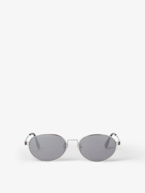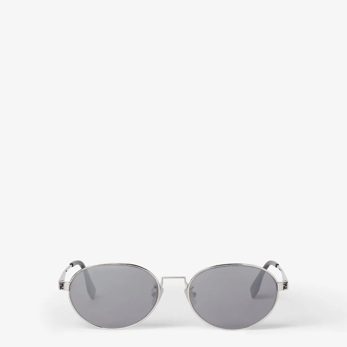 Metal oval sunglasses with a palladium finish. FF logo finished with enamel. Black acetate tips with FF motif. Smoke-gray lenses with flash effect. Adjustable nose pads. Made in Italy Composition: 100% metal Product Code: FOL586V1TF1UI0 Product Care: Wash your eyeglasses every day with warm water and a pH-neutral soap.Do not use alcohol, aggressive chemical products or disinfectant wipes and do not dry them with paper or other cloths that could scratch them or leave streaks.Dry with a clean microfiber cloth.After use, always keep your eyeglasses in their case.