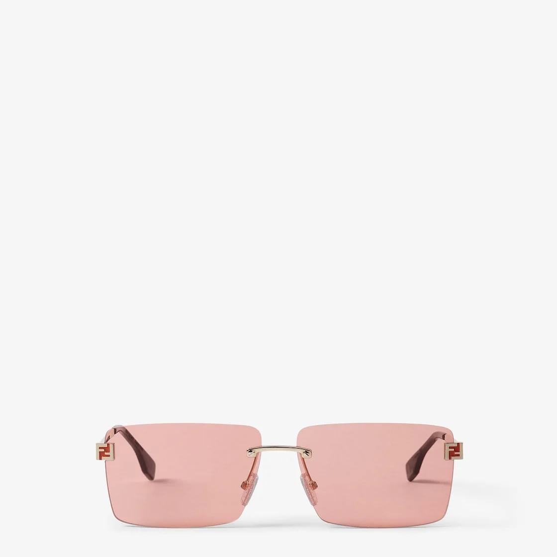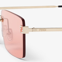 Rectangular, ultra-lightweight Fendi Sky glasses featuring coral pink lenses and metal end pieces with 3D FF customization. Slim gold-colored metal temples with black acetate tips. Adjustable nose pads. Made in Italy Composition: 100% metal Product Code: FOL577V1TF1TMD Product Care: Wash your eyeglasses every day with warm water and a pH-neutral soap.Do not use alcohol, aggressive chemical products or disinfectant wipes and do not dry them with paper or other cloths that could scratch them or leave streaks.Dry with a clean microfiber cloth.After use, always keep your eyeglasses in their case.