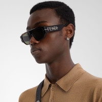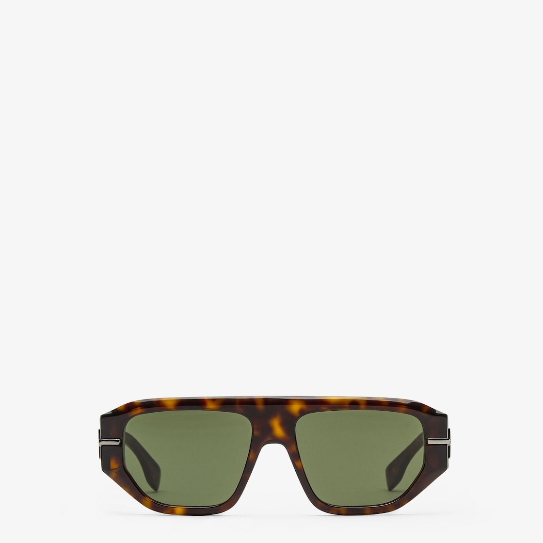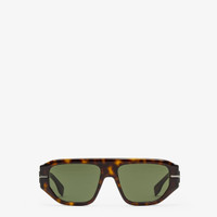 Square Fendigraphy eyeglasses in Havana acetate. Temples in ultra-black ruthenium-finish metal 3D Fendi lettering. Green lenses. Made in Italy Composition: 100% acetate Product Code: FOL566V1PF1QA5 Product Care: Wash your eyeglasses every day with warm water and a pH-neutral soap.Do not use alcohol, aggressive chemical products or disinfectant wipes and do not dry them with paper or other cloths that could scratch them or leave streaks.Dry with a clean microfiber cloth.After use, always keep your eyeglasses in their case.